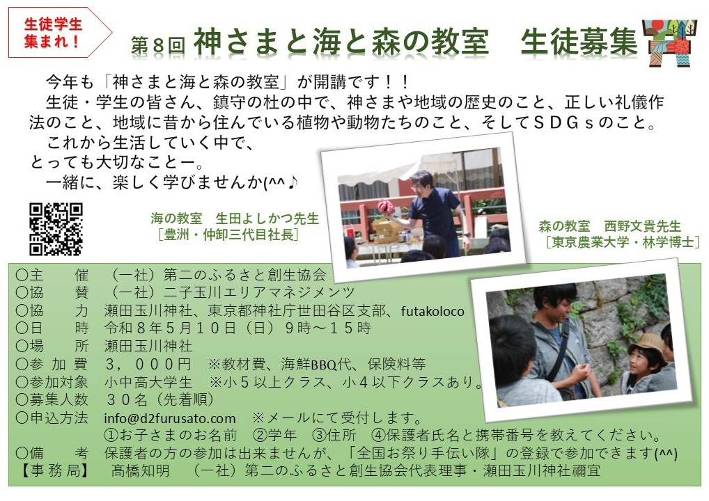 それは、全国の神社仏閣のお祭りのお手伝い、鎮守の杜をモデルとした森(SDGsな森)づくりのお手伝いー。